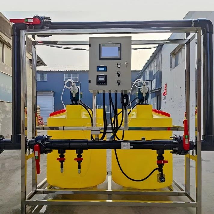 Structure and Working Principle: This device employs a jet mixer that utilizes high-speed hydraulic dispersion to disperse agents or powders, enhancing fineness while increasing contact area between the materials and water. The streamlined design reduces dissolution time. The equipment features a three-chamber overflow system for preparation, maturation, and dispensing. Gravity and solubility differences automatically separate dissolved from undissolved components, which are then thoroughly mixed by a low-speed agitator to ensure uniform solution distribution.
