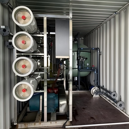 The containerized reverse osmosis (RO) unit is a “mobile, plug-and-play water treatment plant”. The entire system—including pretreatment units, high-pressure pumps, RO modules, chemical cleaning systems, electrical controls, instrumentation, and piping—is highly integrated and optimized, housed within a standard 20-foot or 40-foot container.