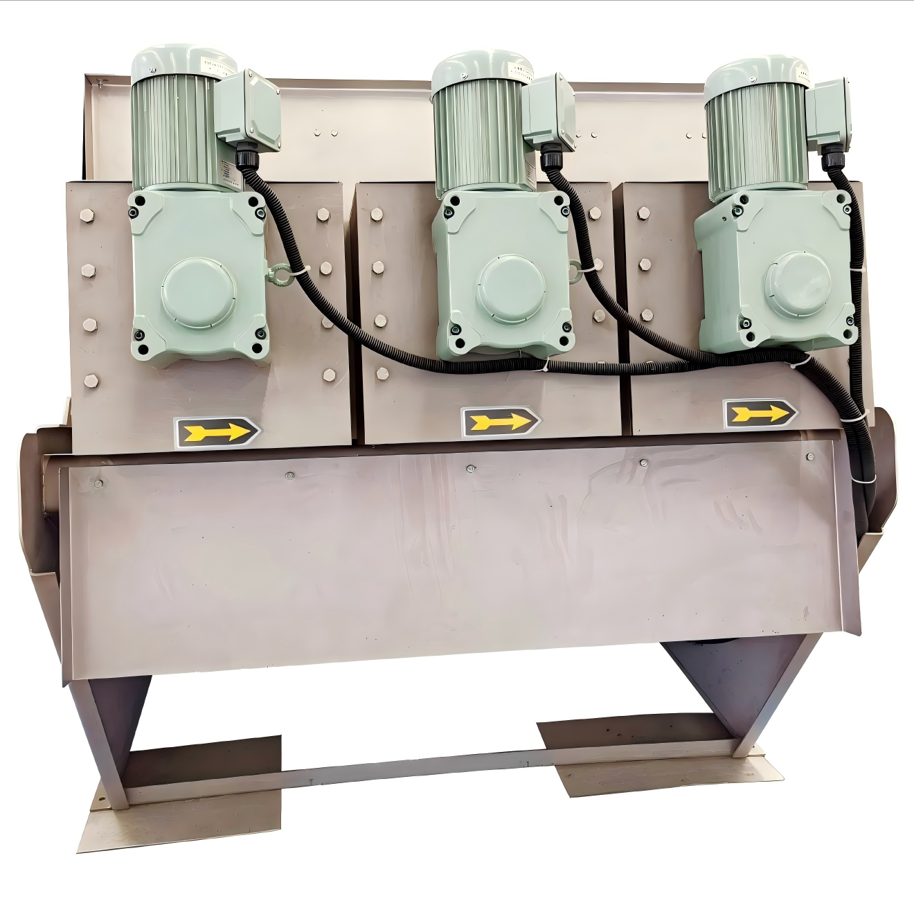 This configuration enables the central ring to perform orbital motion during the conveyor’s rotation, ensuring continuous cleaning of the drum assembly and efficient moisture discharge. The design achieves exceptionally low energy consumption during operation.